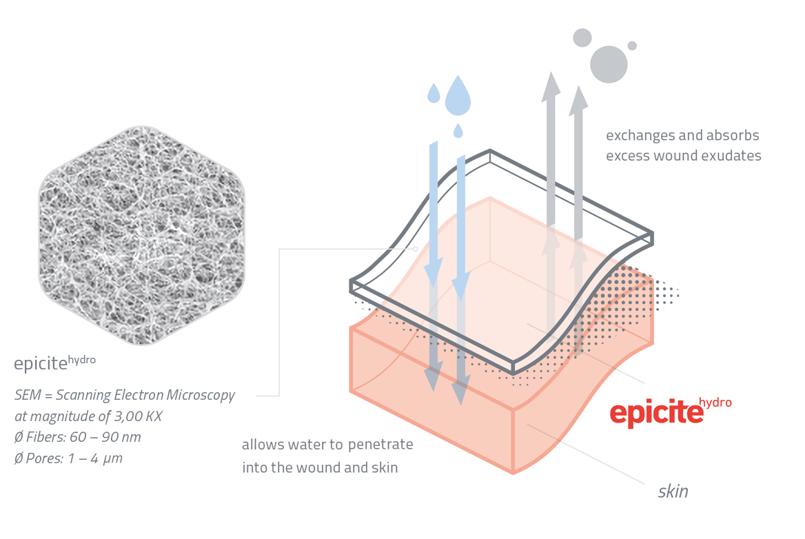 Producto hidroactivo sintético no biológico que crea un entorno ideal para la cicatrización de quemaduras y heridas. De este modo con epicite, se evita el riesgo de enfermedades producidas por el contacto con tejidos animales como las enfermedades que alteran el sistema inmunológico- llamadas enfermedades por priones.